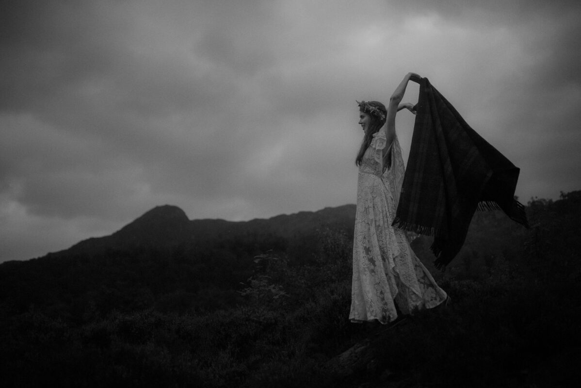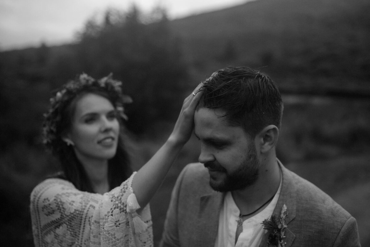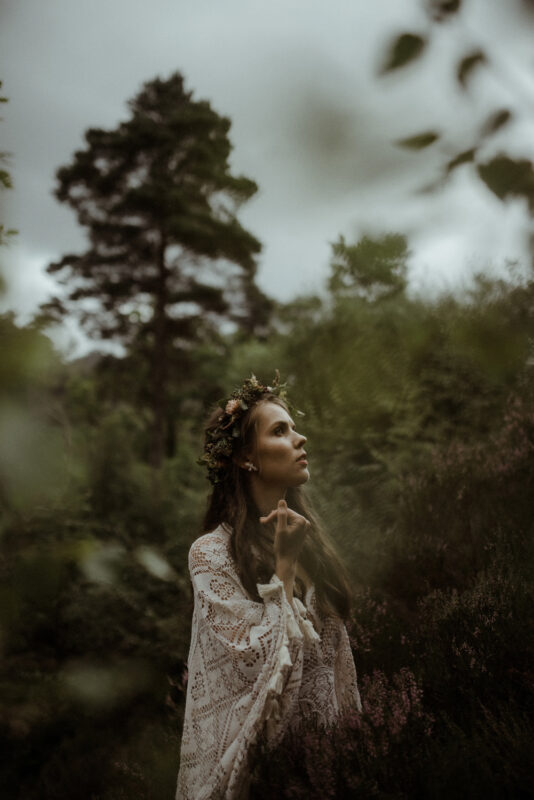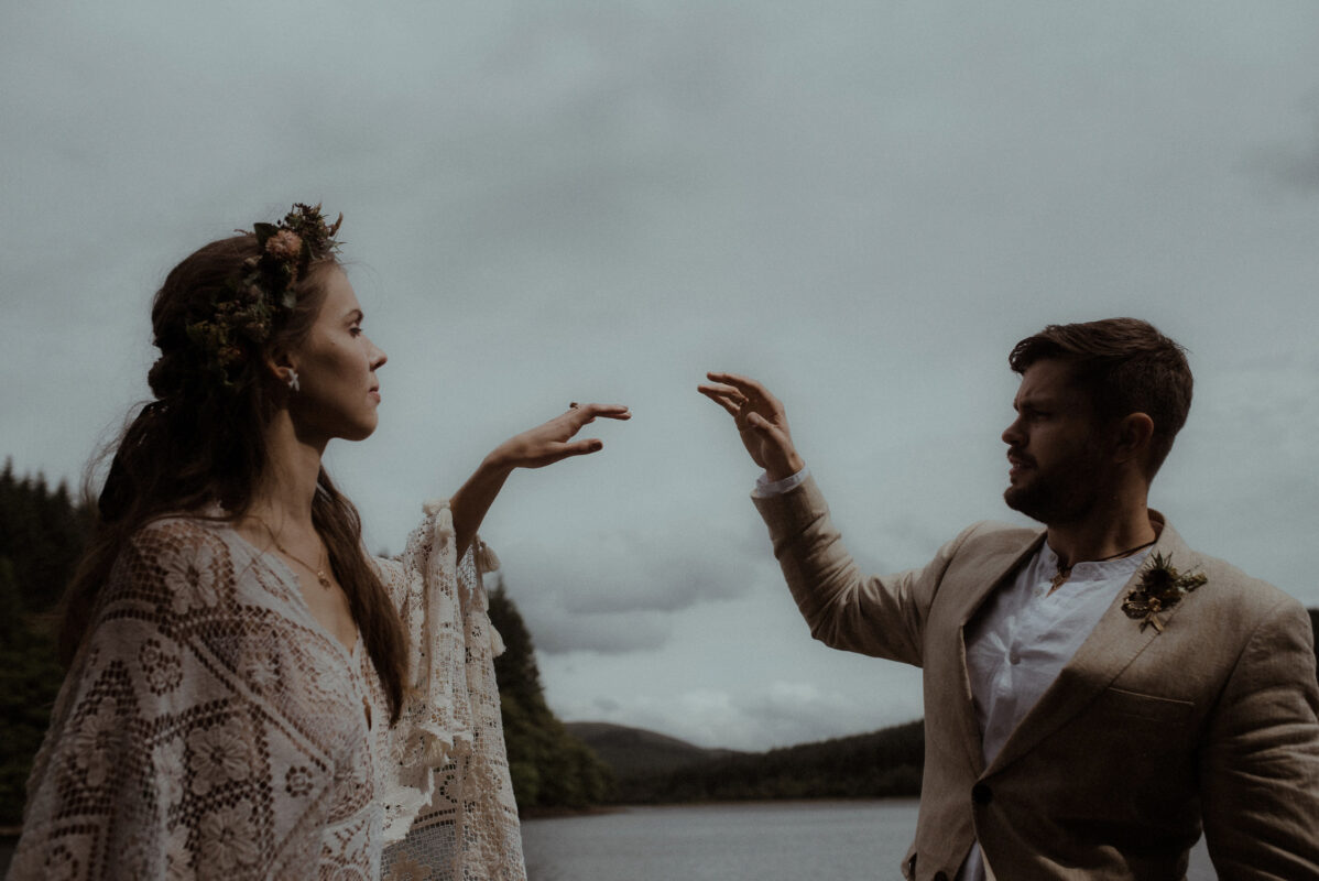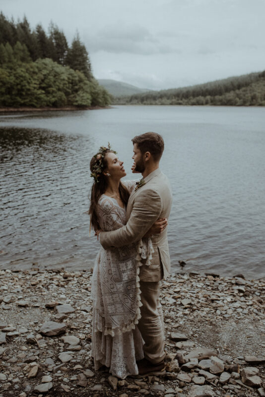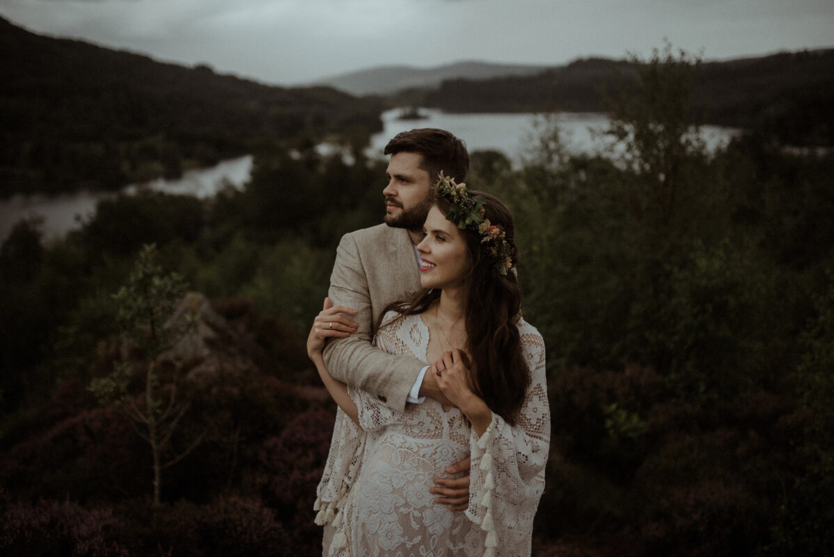 It was a sweet, early morning elopement in the heart of Scottish Trossachs, amongst wooded glens, braes and lochs. Diana and Tommy were married by Andrea Taylor in the centre of a stone circle overlooking the wild beauty of the hills. Surrounded by the peaks and graced with an abundance of heathers and ferns, they became one with each other and one with nature.